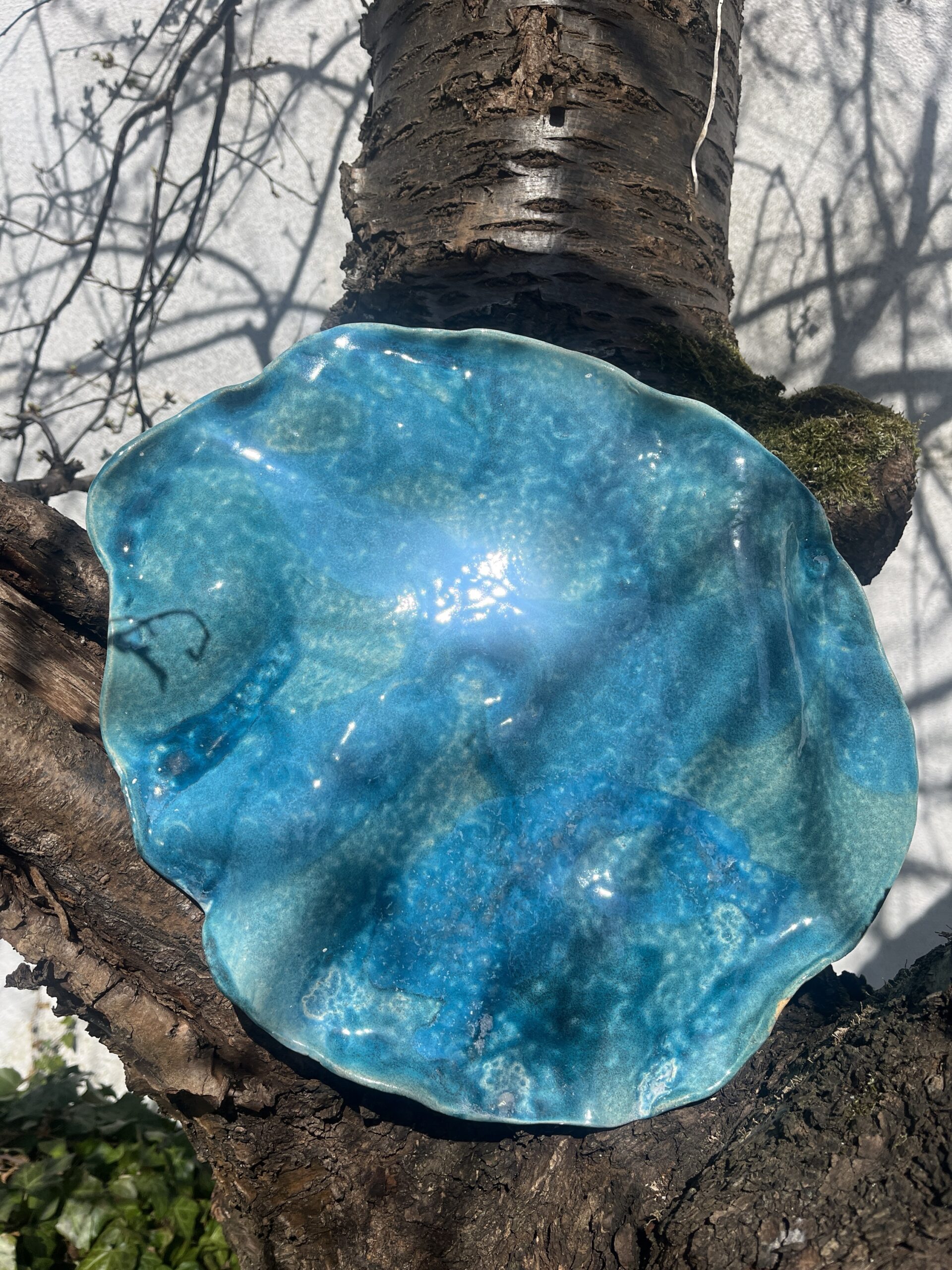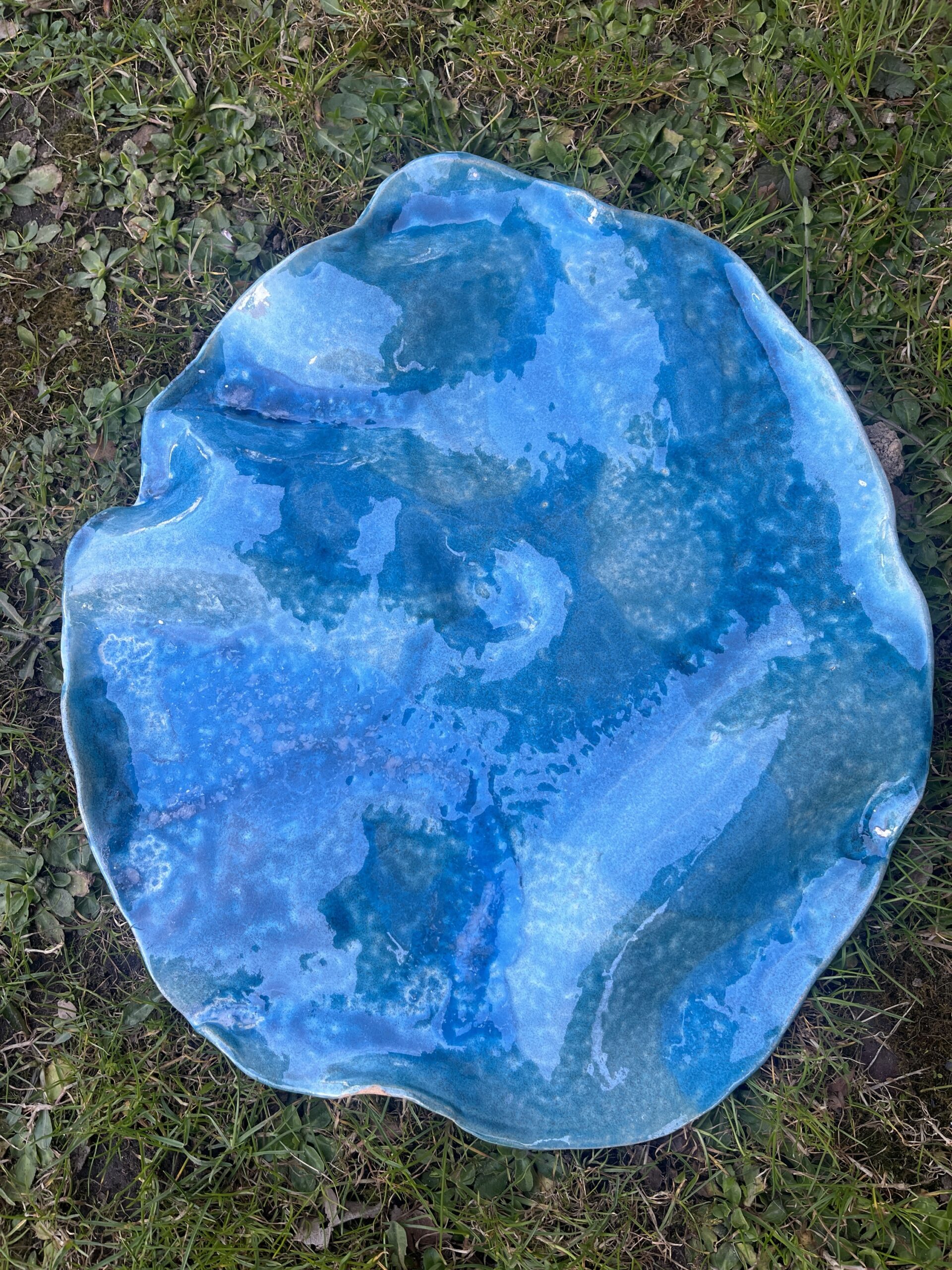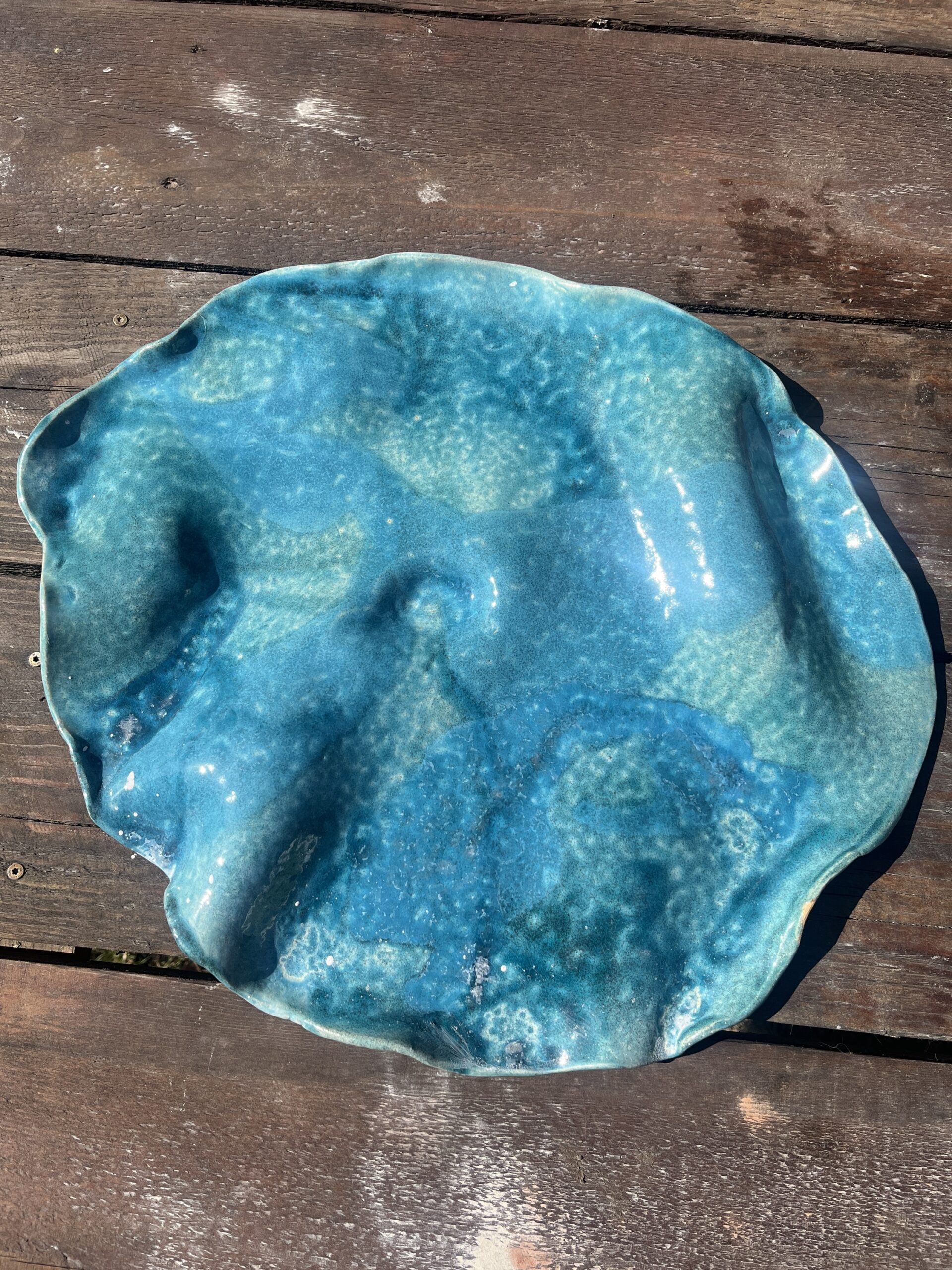 Talerz ceramiczny formowany ręcznie. Wymiary: 41/34 cm.